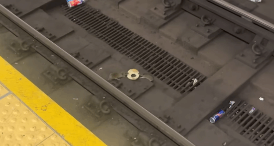 据报道,这段视频是在曼哈顿埃塞克斯街地铁站内拍摄的。画面中,两只老鼠在铁轨上为争夺一块食物相持不下,过了一会儿,第三只老鼠也加入了这场争抢,它们的对峙一直持续到地铁进站。这段完整视频的时长大约有3分钟。
