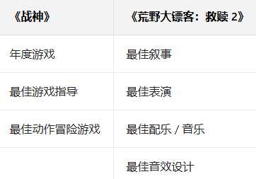 《战神》与《荒野大镖客:救赎 2》在 2018 年游戏大奖上的获奖一览