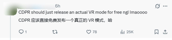 更有玩家提出,要是CDPR官方不允许这类mod存在,那就应该推出官方的VR版本来弥补市场空缺。