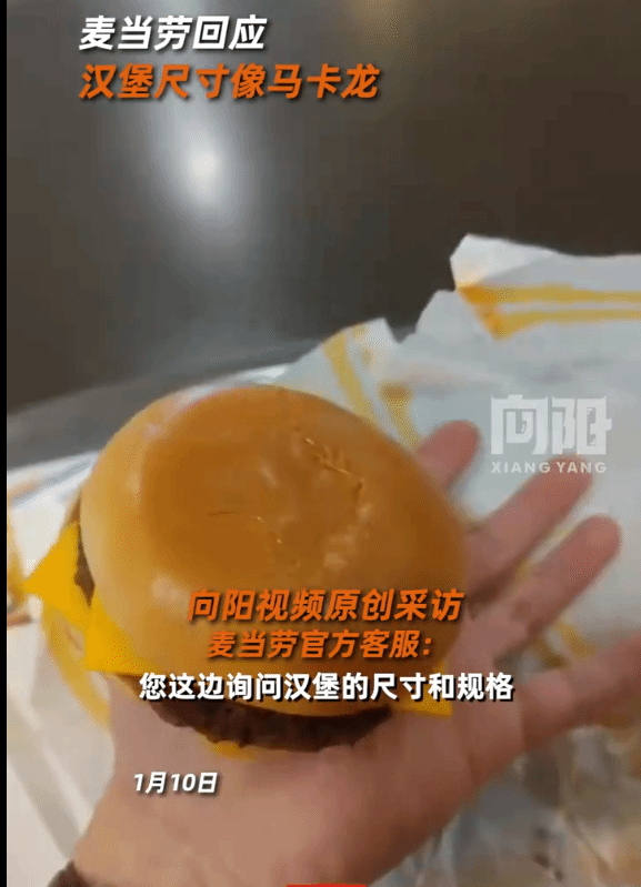 1月10日,有网友发文抱怨自己买到的麦当劳汉堡和马卡龙差不多大,此事引发众多网友讨论,不少人在评论里表示觉得麦当劳汉堡的尺寸越来越小了。