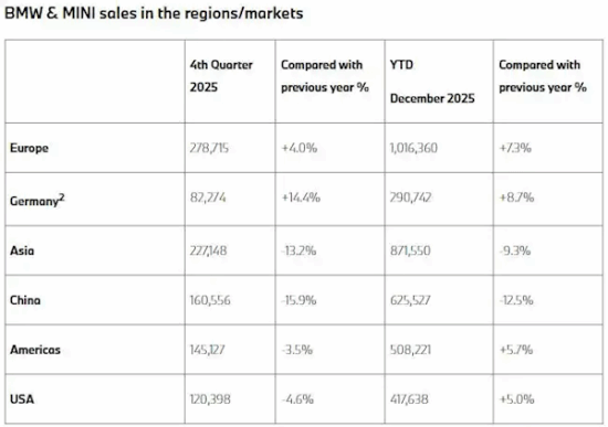 宝马集团近期对外公布了集团销量数据。数据表明,宝马2025年全年累计销量达2,463,715辆,与上年同期相比小幅增长0.5%。