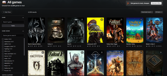 要说被玩家安装MOD最多的游戏,经典老牌MOD游戏《上古卷轴5》无疑是绝对的佼佼者,其MOD安装量接近2000万次。而Bethesda旗下的其他几款经典作品同样表现不俗,《辐射:新维加斯》的MOD安装量达到356万次,《辐射4》则有300万次。