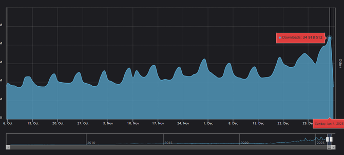统计的节点是美国时间1月4日,当天Steam平台的同时在线玩家数量达到约4100万,创下历史新高,这一情况被视作MOD站流量刷新纪录的根本原因。