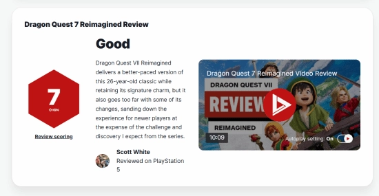《勇者斗恶龙7重制版》的媒体评测目前已正式开放评分,IGN给该作给出了7分的评价。