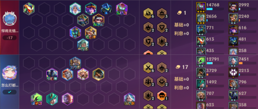 但要是你积分充裕,即便连败也坚持玩下去,当血量低于50时,就在4-1阶段拉到8人口,寻找两星乌迪尔和寒冰,凑出6决斗大师的羁绊来稳住局势,之后再存钱上9人口,找两星李青和寒冰作为最终的兜底阵容。