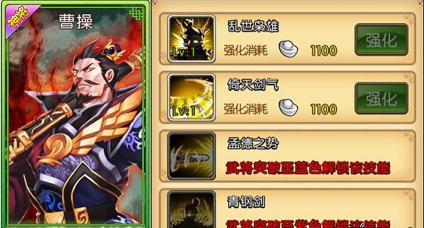 孟德之势:只要曹操尚在人世,便会降低所有对手的物理防御。