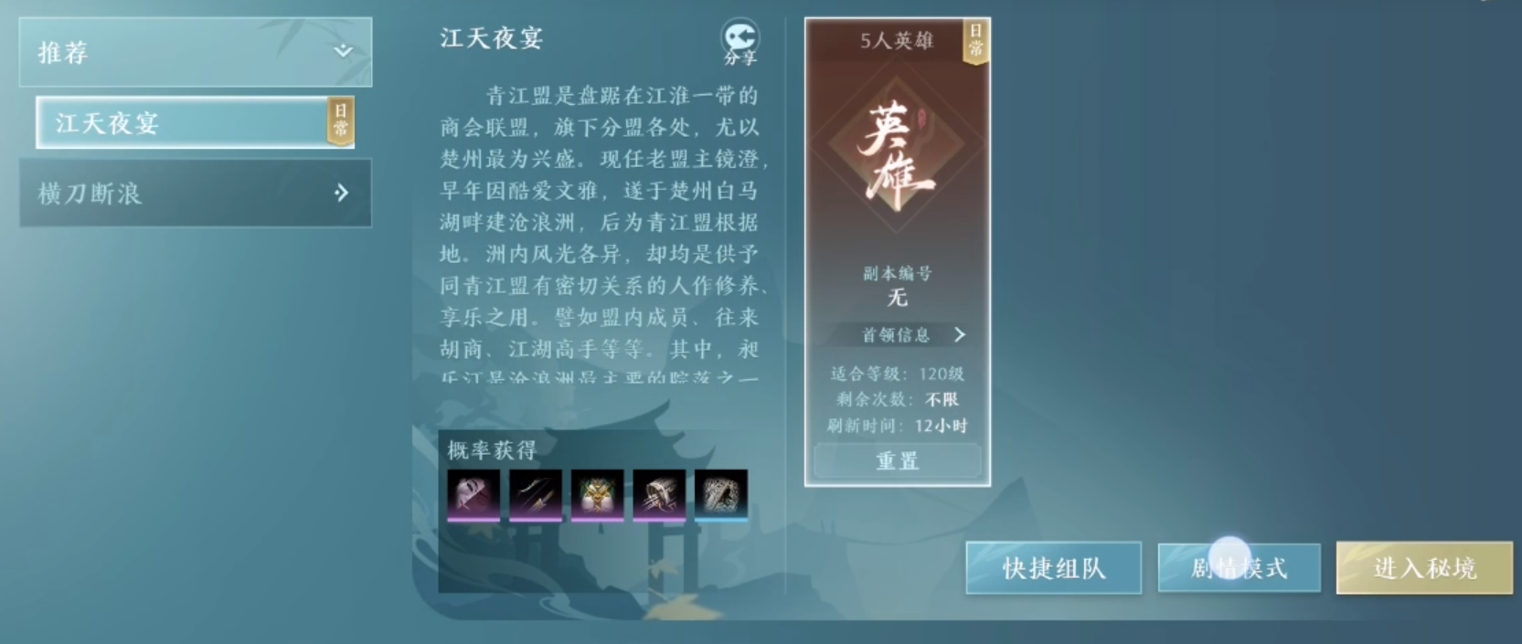 【江天夜宴】作为英雄级别的五人秘境,它和其他秘境的区别在于挑战顺序——要先打老二。老二的技能机制相对简单,玩家只要及时避开红圈就能应对。而老一的部分特定技能需要留意躲避,但红圈出现时可以不用躲;血量偏低的玩家可以开启减伤技能,或者由奶妈及时抬血。需要注意的是,老一的三个矩形伤害区域会叠加伤害,务必躲开,不过要是奶妈奶量足够的话也可以不用躲。至于老三,玩家只需及时打断它的技能读条即可;当boss靠近时,还能冲刺到旁边的npc位置来规避伤害。