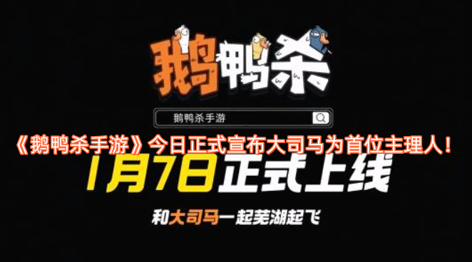 《鹅鸭杀手游》官方正式宣布将于1月7日上线!同时官方还发布了视频,公布了本作的首位主理人是“金牌讲师”大司马!这表明手游版将增添更多趣味与看点。感兴趣的玩家们,快来关注以下资讯内容吧!