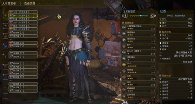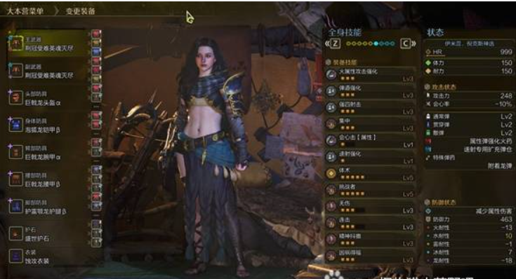 四把属性轻弩的配置基本一致,区别仅在于搭配对应属性珠与射法。由于轻弩的属性会心倍率不高,机械武器先复原三攻击两装填,再进行攻击激化。至于最后的复原加成,我刷了几百次最多也只能达到3EX,其实谁出EX都不影响,要是两个装填都出EX反而更好,这样速射弹夹就能有9发了。技能方面优先选巨戟龙的默示录,巨戟龙武器搭配巨戟龙套装效果很合理,第二个技能没什么特别要求,最好是霸主,不是也没关系。