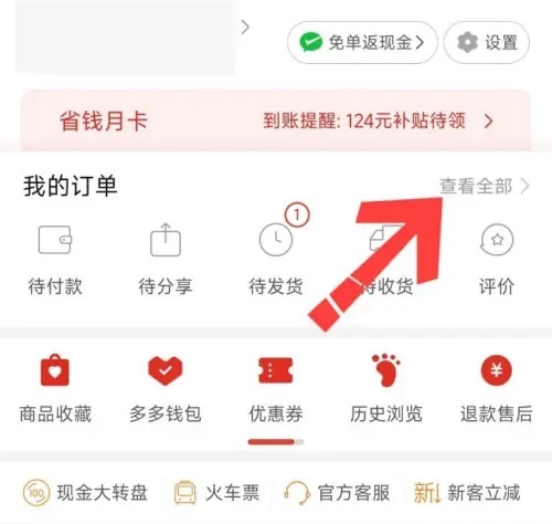 1. 打开拼多多,进入个人中心页面后,找到并点击“查看全部”这个选项。