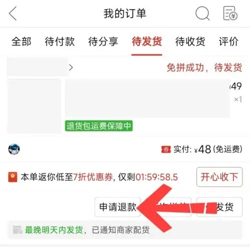 4. 这样就能顺利取消拼多多的订单了。